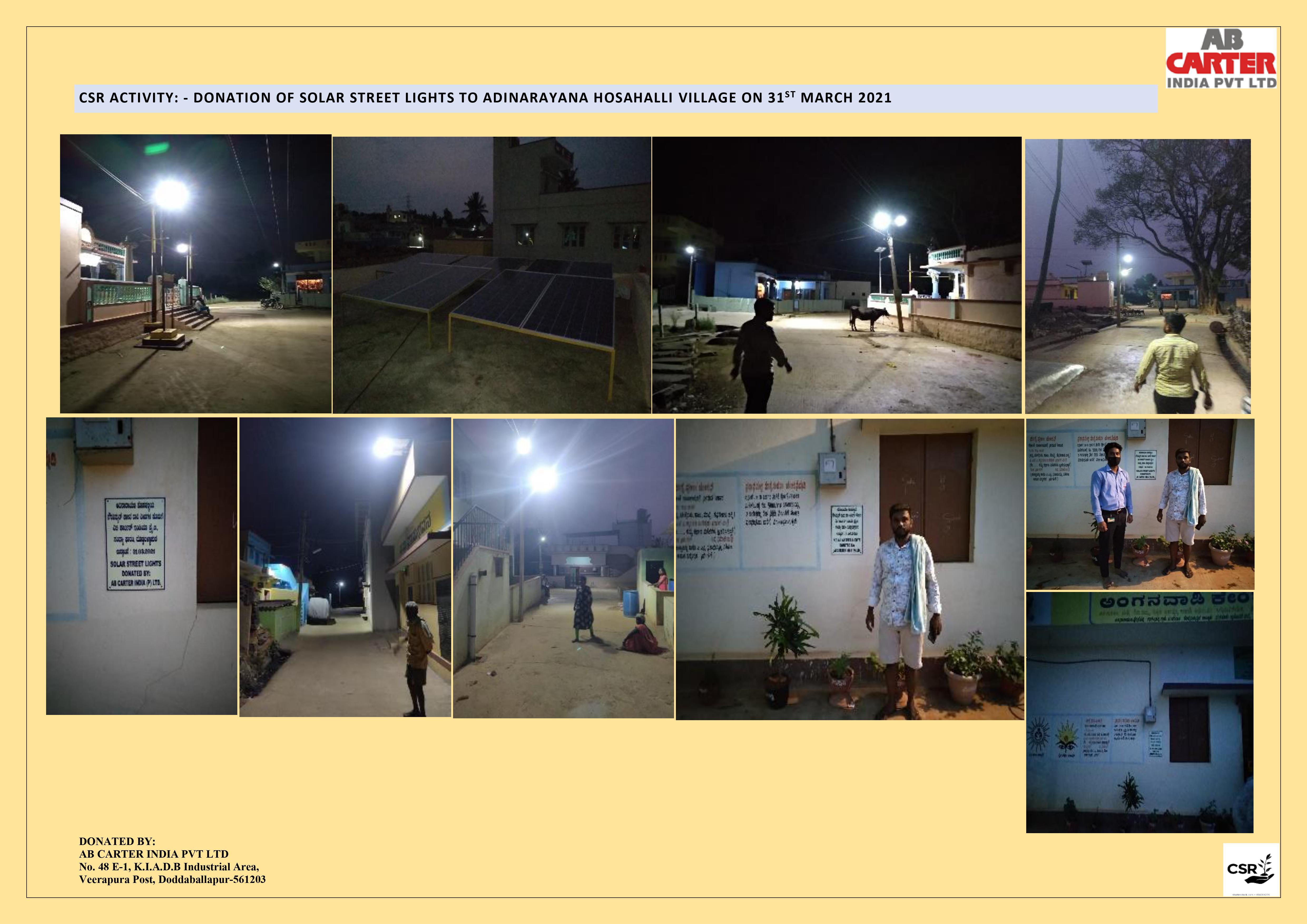 - CSR ACTIVITY: - DONATION OF SOLAR STREET LIGHTS TO ADINARAYANA HOSAHALLI VILLAGE ON 31